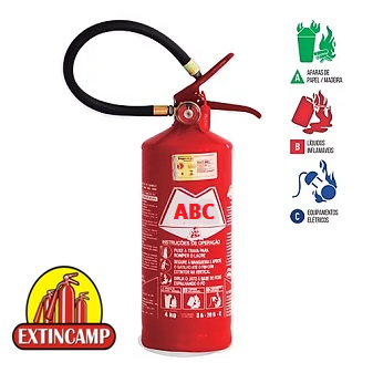 Extintor ABC 4 KGExtintor ABC 4 KG - 2A:20BC O pó ABC apaga os três tipos de incêndio. O Modelo de 4 kg é o mais exigido pelo Corpo de Bombeiros.Classes de incêndio:A - Materiais sólidos fibrosos,...
